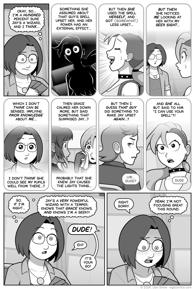 After finding out just how much there was for Tedd to go over (and this was AFTER editing it down), I found myself choosing between us looking at Tedd's face for several panels, or convenient visuals from the past few pages. I chose the latter.