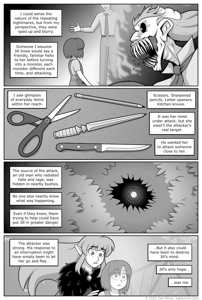 I had originally planned to make both the first and second panel as blurry to readers as they were to Pandora, and maybe some of you would have actually appreciated that, but I decided I didn't want to blur either of them. Hopefully someone somewhere wanted to clearly see that monster face.
