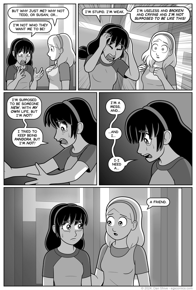 El Goonish Shive Introductions The Goo Shade, Part 1 Q&A #1 Shade, Part 2 Relations, Part 1 April Fools Week Relations, Part 2 Catnip Sister Part 1 - Open The Box Part 2 - Read The Rules Part 3 - Set Up The Pieces Part 4 - Play The Game Part 5 - Knock The Board Over Part 6 - Scattered Pieces Part 7 - Fist Fight Part 8 - Clean Up New And Old Friends Flipping Cardboard Lady Mysterious II slooF lirpA Squirrel Diplomacy Lunchtable Revelations Night Out Part 1 - Martial Arts Crew Part 2 - Elliot's Crew Part 3 - Ellen's Crew The Morning After Q&A #2 Tam Eh Tedd Painted Black Part 1 - Walk In The Park Part 2 - Missing Persons Part 3 - Interviewed By The Devil Part 4 - Into The Dungeon Part 5 - The Truth About Grace Part 6 - The Brewing Storm Part 7 - Fallen From Grace Part 8 - Humanity PB Special Features Shadows After Dark Sleepy Time Second Life The Child Left Behind Red Alert Before The Party Moping Squirrel Intro to South Party Recruiting Even More Recruiting Party Fashion Family Reuinion Grace's Birthday Party Part 1 - Arrivals And Presents Part 2 - Bending Genders Part 3 - Festivities Part 4 - Hold On Hope The After Party Q&A #3 Hidden Genesis Hidden Genesis In The Shadows The New Students Susan Draws The Line Squirrel In The Classroom Sister 2 Part 1 - The Trials Of Susan Part 2 - The Statue Part 3 - Pent-Up Magic Part 4 - Evil Monkey Part 5 - Moperville News Part 6 - Weregirl Part 7 - The Dark Clouds Gather Part 8 - Talon vs. Scythe Part 9 - Wrath of God Part 10 - Pandoras Box Q&A #4 Q&A #4 Bringing Silly Back Indiana Elliot And The TOSF T-Minus The Demon Ally Hammerchlorians - 1 Hammerchlorians - 2 Hammerchlorians - 3 T-Minus Dark Allegiance New And Old Flames - 1 New And Old Flames - 2 New And Old Flames - 3 New And Old Flames - 4 New And Old Flames - 5 New And Old Flames - 6 Q&A #5 Q&A #5 9001% Serious One Way Road Legends of Celida Death Sentence - 1 Death Sentence - 2 Death Sentence - 3 Death Sentence - 4 Death Sentence - 5 What Is Love Summer The End Of Spring Power Fantasy Rocks Fall Nobody Is Hired Nepotism Hair By The Numbers Duel Of The Discs There Be Whales Here There Be Whales Here Pt 2 There Be Whales Here Pt 3 The Dawn End Of An Era End Of An Era pt 2 Family Tree Family Tree Part 2 - Arrival Family Tree Part 3 - Par-TAY Family Tree Part 4 - Weirdness Family Tree Part 5 - A Troll Family Tree Part 6 - Banhammered Family Tree Part 7 - Hangover Q&A #6 Identity Identity Part 2 - Reactions Identity Part 3 - Cat Attack Identity Part 4 - Detective Sarah Identity Part 5 - Basement Chat Identity Part 6 - ILLOGICAL! Identity Part 7 - Dreams identity Part 8 - Ashley Identity Part 9 - Detective Susan Identity Part 10 - Ashley and Elliot Identity Part 11 - Epilogue Summer Moments Guest Comics Guest Comics #1 Guest Comics #2 Pandoras Box Squirrel Prophet SP - Part 2 SP - Final Battle So A Date At The Mall So A Date - Part 2 So A Date - Part 3 So A Date - Part 4 So A Date - Part 5 EGSNP - Question Mark Q&A 7 - The Requestioning Sister 3 - Catspaws Part 1 - Legacy Part 2 - The Will of Magic Part 3 - Reply Hazy Part 4 - Everyone Needs To Talk Part 5 - The Reservoir Part 6 - Maybe Sisters Part 7 - An Unkindness Part 8 - Awkwardness Ahead Part 9 - Traffic Freeze Part 10 - Fluidity Part 11 - All Of The Curse Words Part 12 - Misanthropy Part 13 - In Search Of Wisdom Part 14 - Sister Anxiety Part 15 - Elliot and Ellen Part 16 - BFFs Part 17 - Great Fairy Godmother Part 18 - Gathering Monsters Part 19 - Family Meetings Part 20 - Geminis Part 21 - The Other Dunkel Part 22 - Apocalypse Part 23 - The Fate Of Magic Part 24 - Elliots And Ellens Part 25 - Changes Part 26 - Epilogues The New World The Legend of Diane The Secret of Sam Q&A 8 - The Lord Of The Q&As Title Pending Title Pending 2 - Even More Pending Title Pending 3 - Untitled Party Title Pending 5 or 6 Balance Part 1 Part 2 Part 2-B Part 3 Part 4 Part 5 Part 6 Part 7 Part 8 Part 9 The Road Ahead Brother Father Our Future Recruitment Layers, Part 1 Layers, Part 2 Layers, Part 3 Layers, Part 4 Hope, Part 1 Hope, Part 2 Hope, Part 3 Hope, Part 4 Hope, Part 5 Hope, Part 6 Hope, Part 7 Hope, Part 8 Hope, Part 9 Hope, Part 10 Hope, Part 11 Hope, Part 12 False Kings False Kings, Part 1 False Kings, Part 2 False Kings, Part 3 False Kings, Part 4