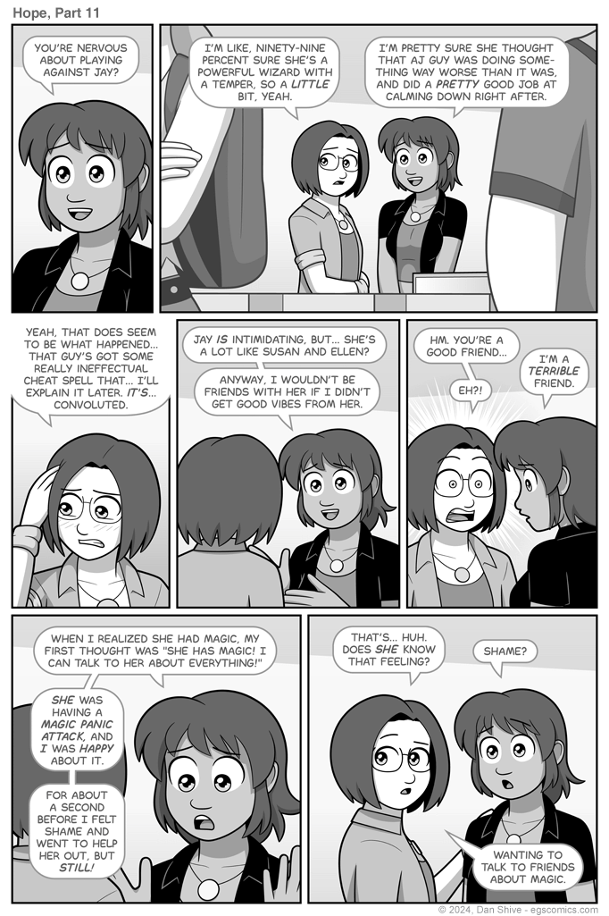 - Tedd discovering AJ's spell (and the next page where he starts assessing it)- What happened with Jay and AJ- Grace approaches Jay- Tedd's assessment of what happened with Jay- Grace talking to Justin about Jay (next page)
