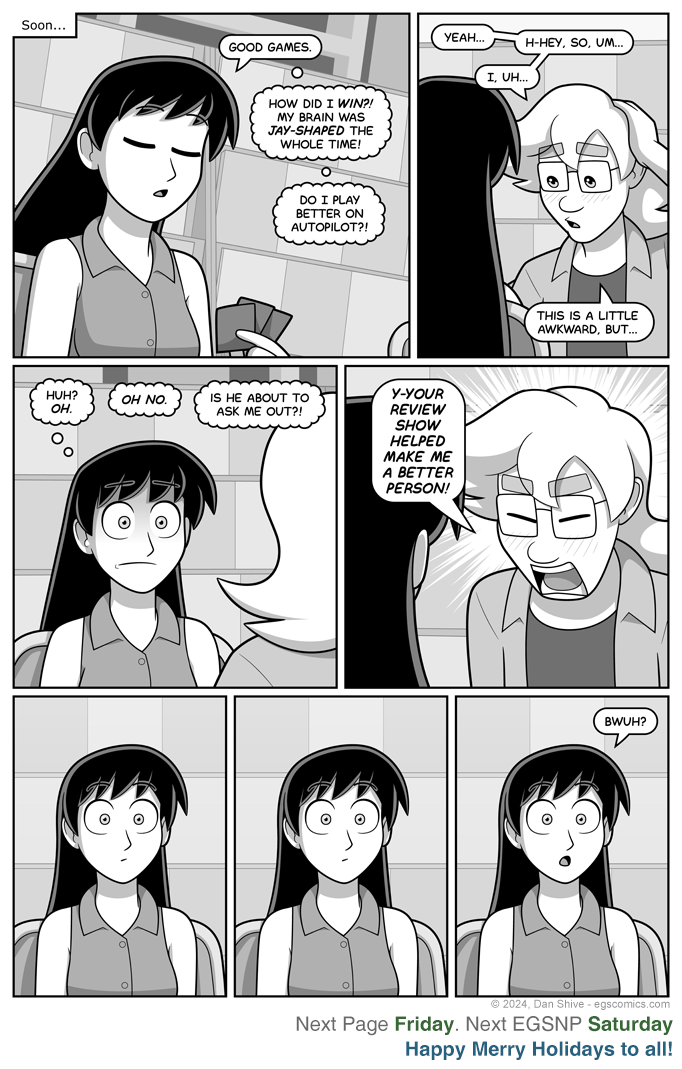My announced plan had been for there to be an EGSNP tomorrow, but my weekend was a lot more stressful than I anticipated, and I've decided to listen to the many nice people telling me I can take more time off for the holidays if I need it.