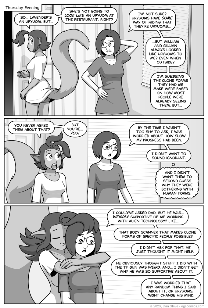 I underestimated how wordy panel three would be. There's a detail I didn't think to include until the middle of making the page, and I underestimated how many times I would reword it for clarity and space.