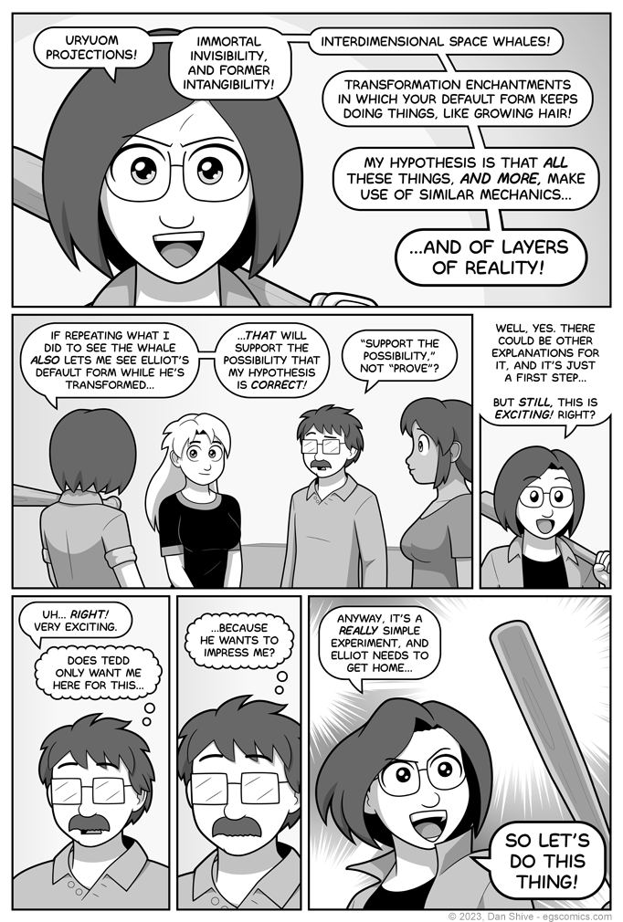 Also, Grace is there. Sorry, Grace! You're logically present, but you're not the test subject, and you've been letting Tedd take center stage, so you haven't had much to do here.