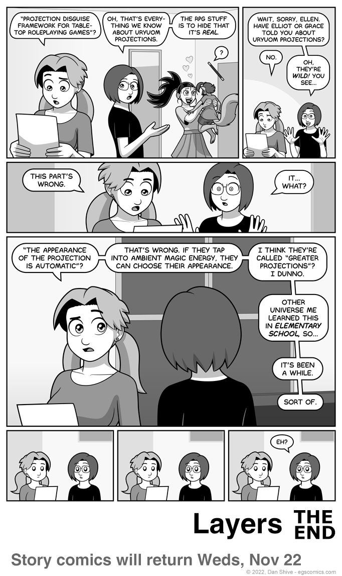 I wanted to foreshadow that Ellen might have information about uryuom projections, but I didn't have any way of bringing up her "second life" without it being a little TOO obvious.