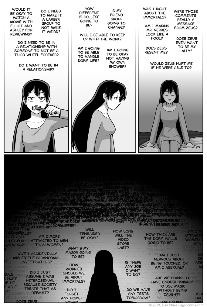 Before writing this page, I knew I needed things for Susan to be thinking about. I was worried about having enough to visually portray what she's dealing with, so I started writing down things that would be on Susan's mind.