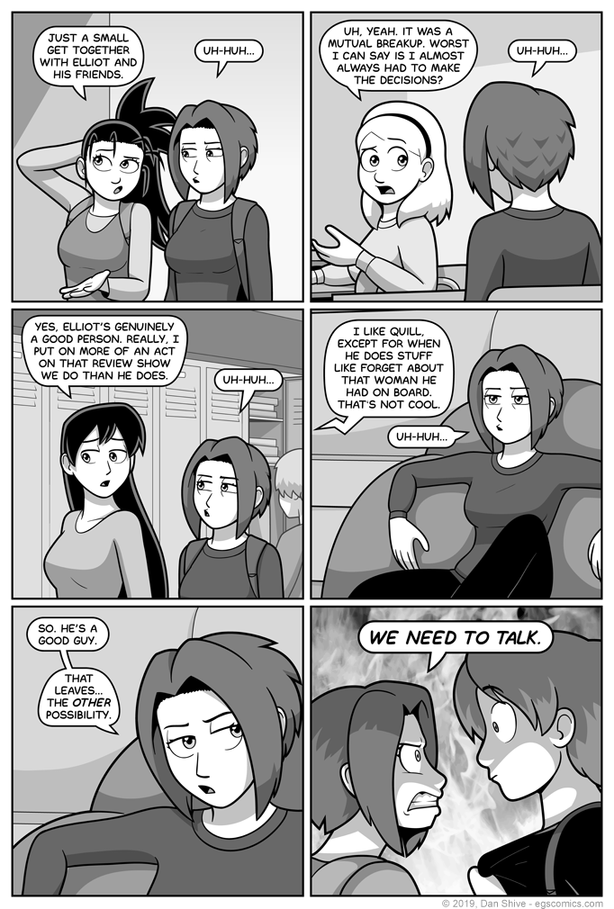"Okay, cool. Time to have Liz question people about Elliot! That's going to be all sorts of comics! Wait, how many pages are we in to the party storyline without getting to the party? 29?"