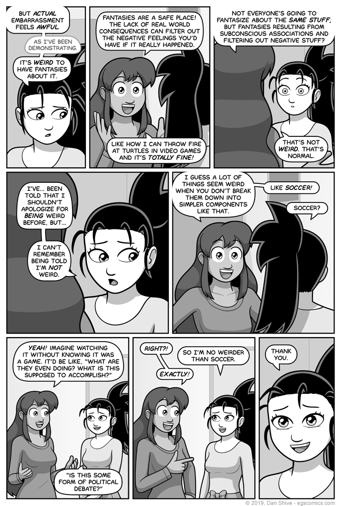 There's a lot I was tempted to have Grace elaborate on, but there are only so many panels and so much reader patience. In the process of cutting stuff, though, we lost Grace pointing out it can be a problem if someone doesn't know the difference between fantasy and reality, and pointing Ashley clearly does know, so huzzah.