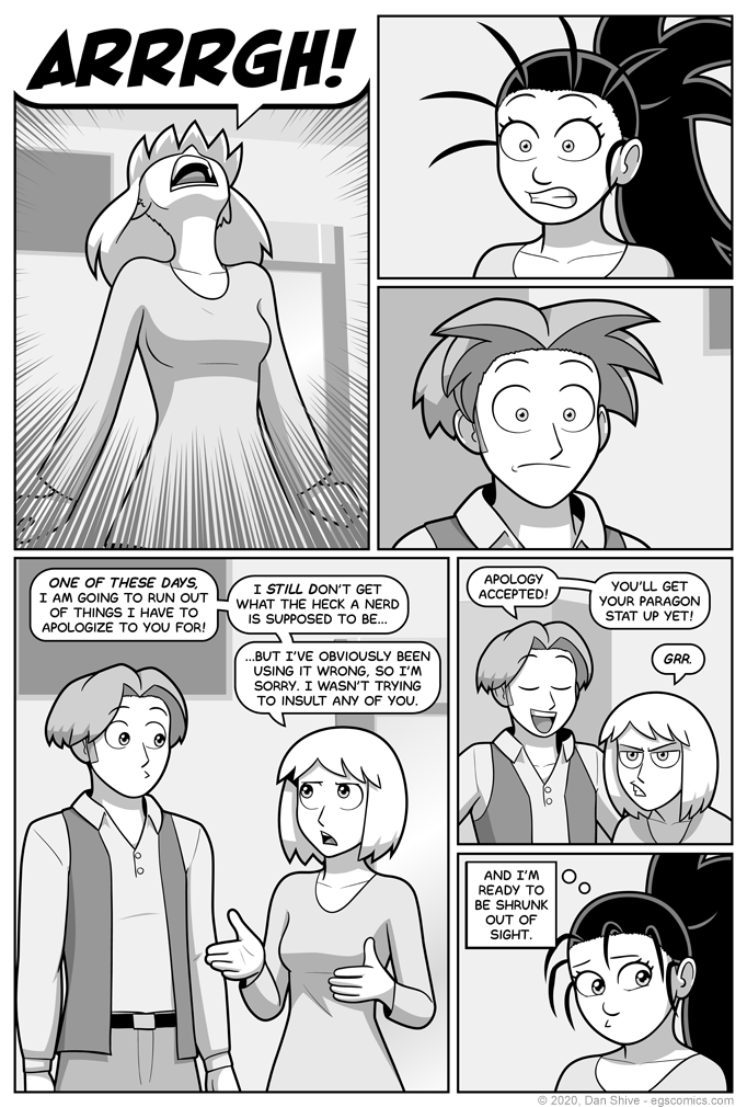 I've been asked what "nerd" was a proxy for, but it really wasn't a proxy for anything. Diane had a previously established thing about nerds I wanted to explore, Ashley had a previously established thing about labels, and I thought of some character stuff that could result from getting into that.