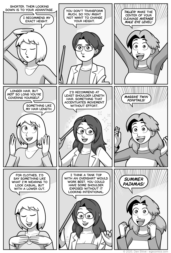 The latest late idea, however, was Tedd providing visuals. I drew her holding the wand in panel two, and had the inevitable "what if she actually used that" thought. I'm glad I did, because I wasn't in the best of moods going into this, but something about casual morphing happy Tedd cheered me up immensely.