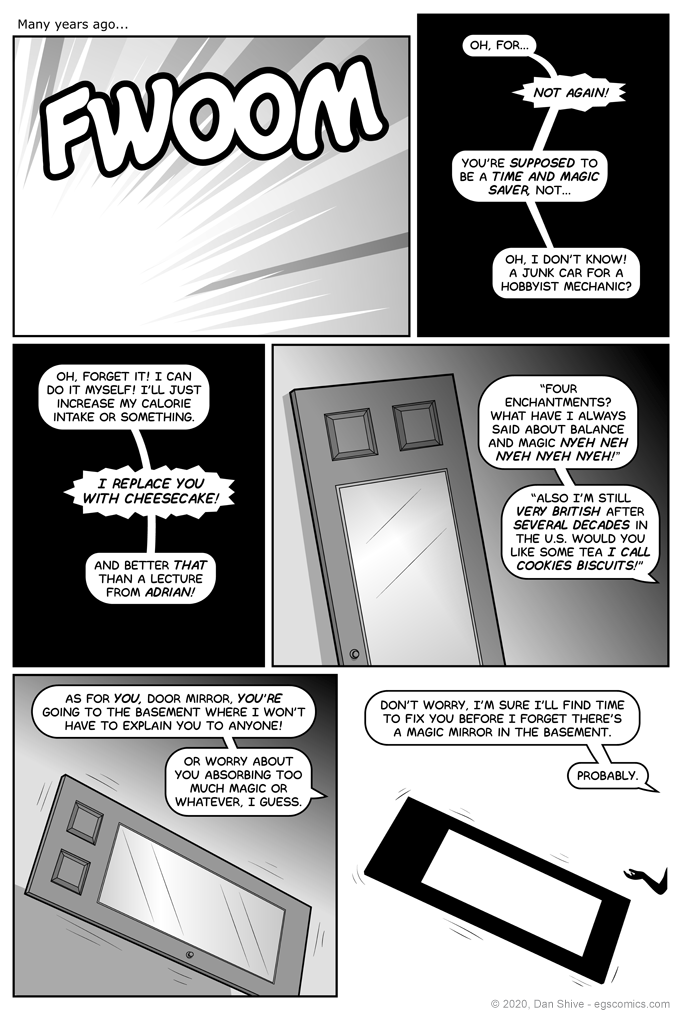Bah. Door. Dialogue. Nonsense. Prepare for me overcompensating with unnecessarily complicated perspective in upcoming comics or something. I went with what I did with good reason and just feel lazy for it.
