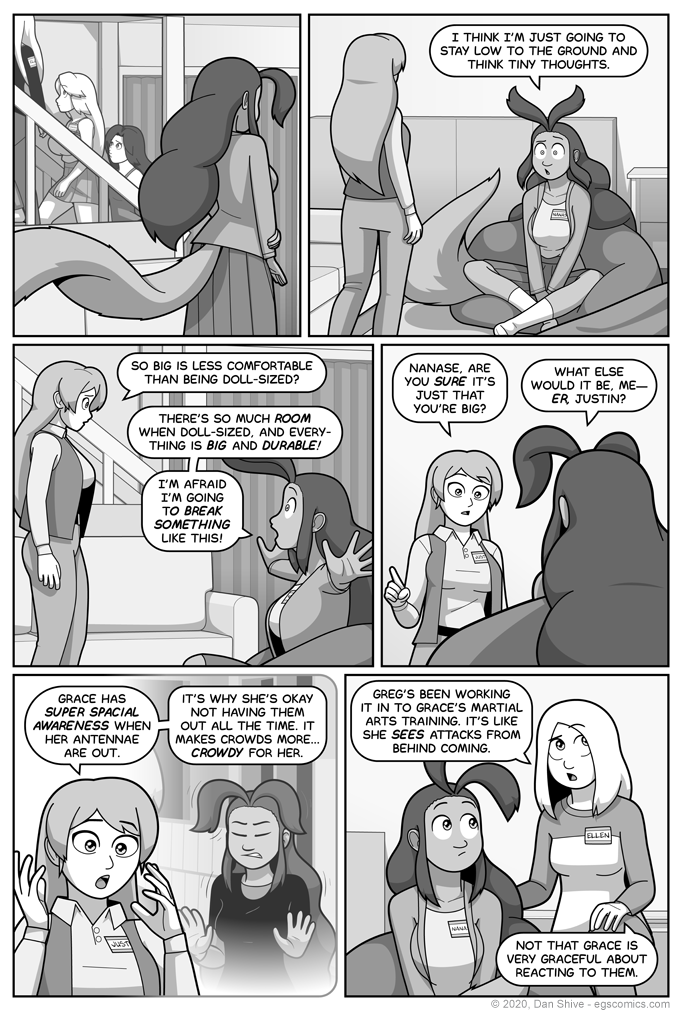 And I'm still experimenting with my inking techniques and fretted over a whole bunch of technical things regarding this page, and I spent a weirdly long amount of time on that panel with the flashback given that the part with Grace isn't even redrawn, and...