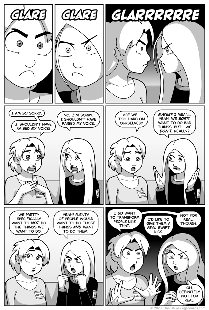 Incidentally, when I say "I was wrong", that's not me embellishing for the commentary. I was literally about to write a commentary all about how they don't balance each other out, and that their dynamic is they enable each other (mostly in reference to the last panel) when I had a "wait a minute" moment and realized that, no, there's actually a very important way in which they balance each other out.