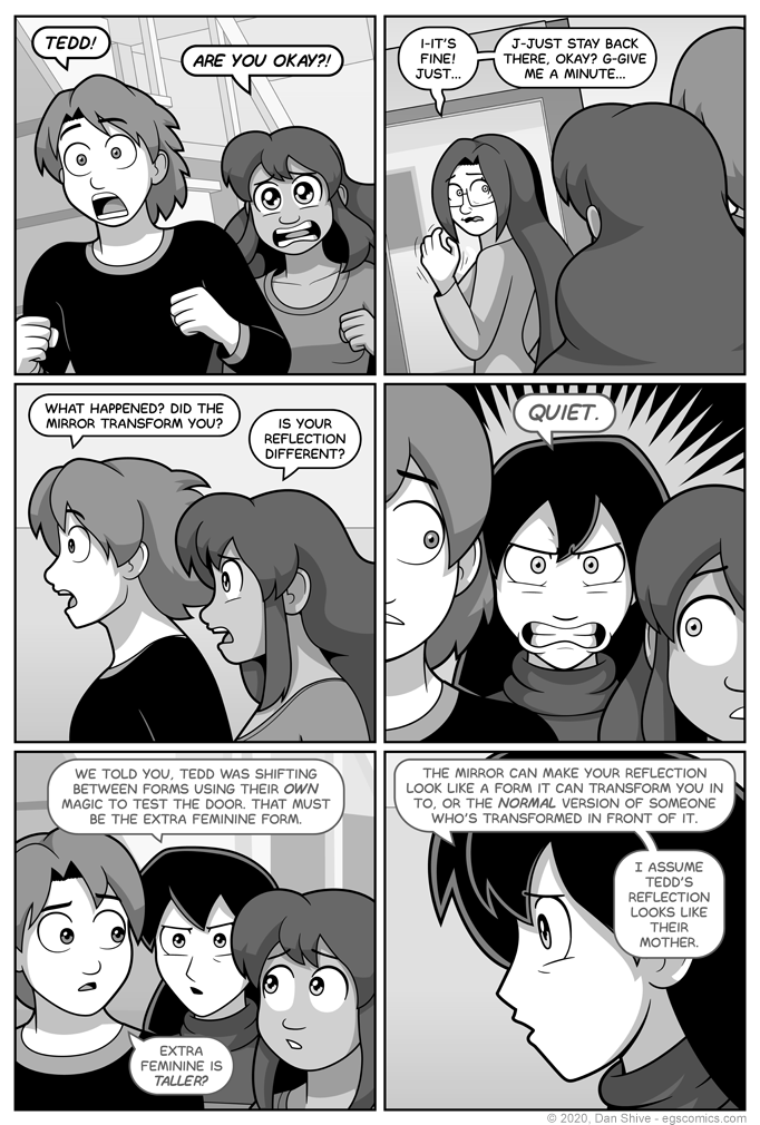 This page was tricky. I needed to quickly confirm / clarify what was happening, it needed to be written AFTER the previous page was seen by readers so I'd know what, if anything, needed clarification, and I didn't want it to be a massive spilled barrel of exposition and recapping.