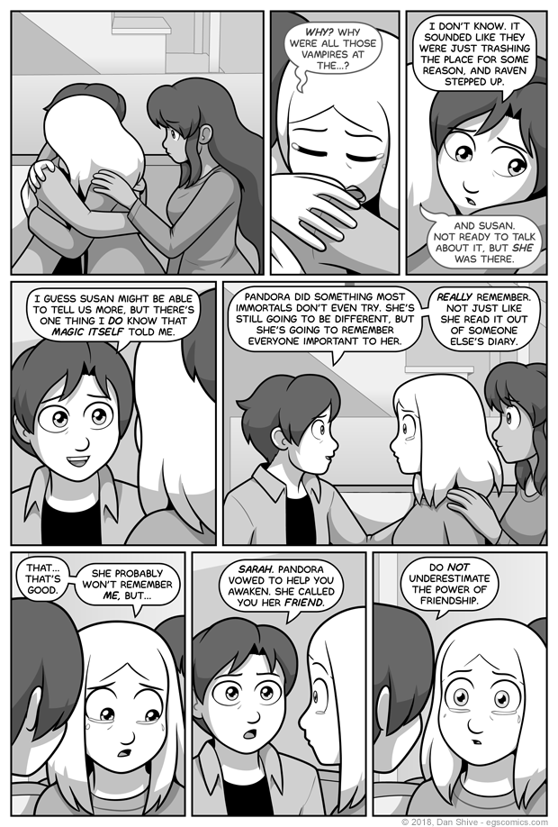 Grace didn't technically have anything to say on this page, but you KNOW she had to be there for this talk. There was no way she was going to be like "right, have fun telling Sarah about what happened to Box / Pandora. I'm going to go somewhere else for a bit."