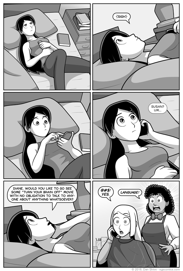 And yes, Diane has dared--DARED!--To get a haircut. I am also aware that it's pretty similar to Sarah's hair in this comic, but minor spoiler warning, it's gonna look a little different later (I decided after inking this that it should be shorter in front for Sarah differentiation, and one other change).