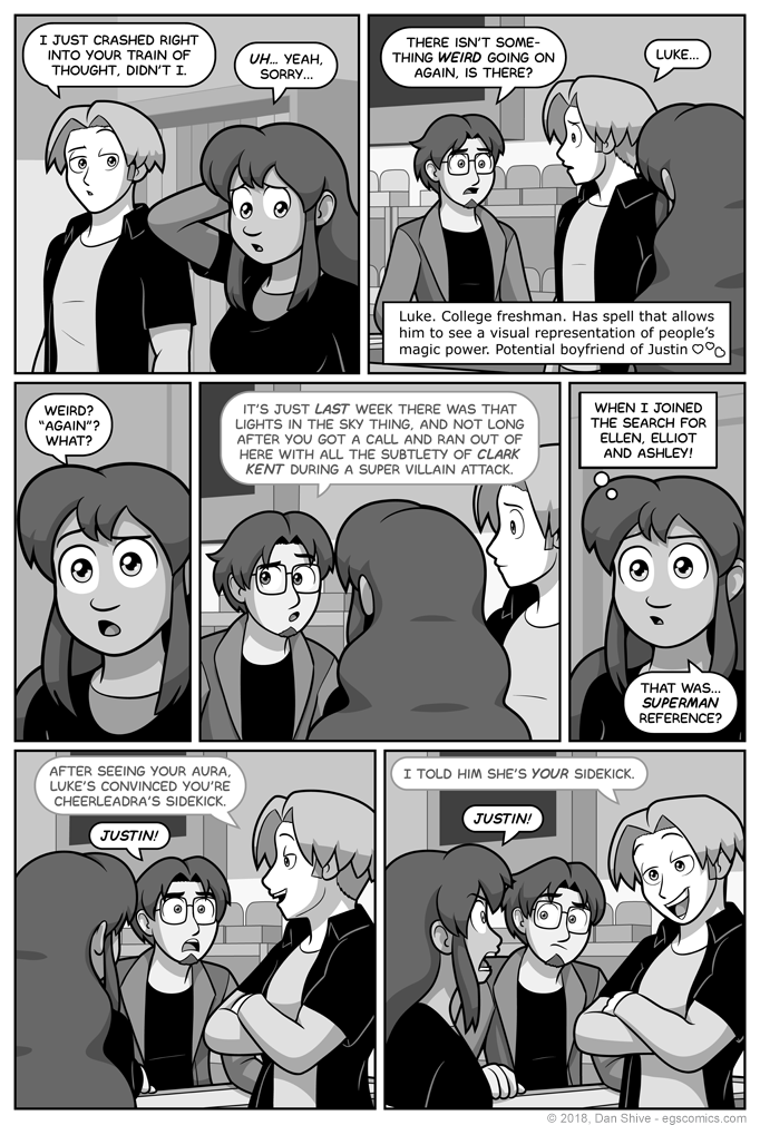 After a, ah, fair amount of feedback from when Luke was introduced, I tried giving an actual soul patch for facial hair (it's canonically been two weeks, plenty of time to change that up). This storyline also has Sam with similar facial hair AND glasses, so I figured now was as good a time to experiment.