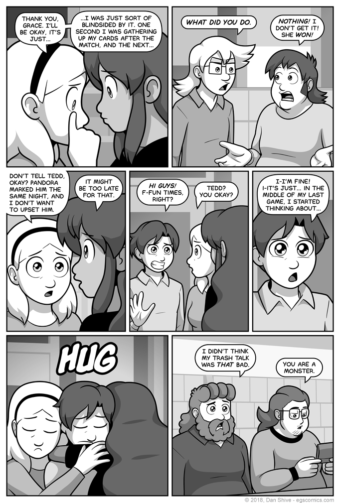 Obligatory reminder that there was a "during the tournament" narration box a couple comics back when Grace was clarifying an issue with the plot--I mean, having an internal moral debate.