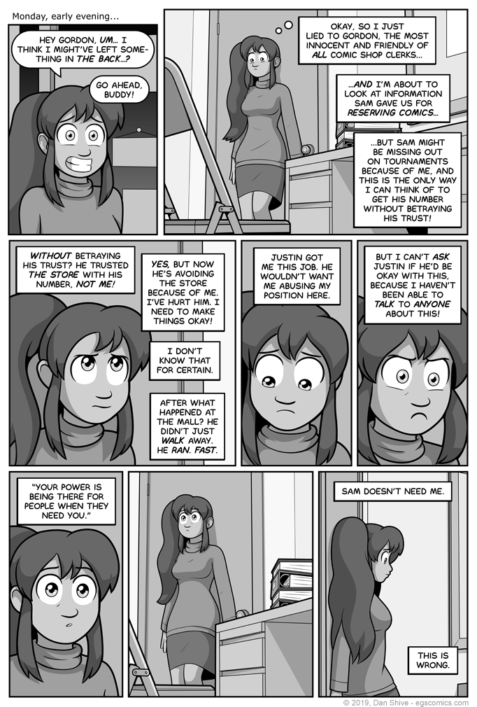 I also think I might have failed to make clear that Grace specifically wanted to call Sam about him running away and possibly missing out on tournaments because of her. Just a hunch. I hope that's clear here, and I might edit the previous comic for clarity if a good way occurs to me.