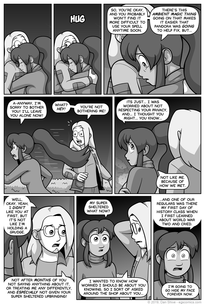 Panel two, meanwhile, is confirmation that the ambient magic energy buildup remains an issue. I've seen a number of assumptions that Raven must've taken care of it by now, but he still needed Pandora to tell him what to do and where to do it. This will be addressed again later, but I wanted to get this confirmation out there, and it was relevant given the note to Sam.
