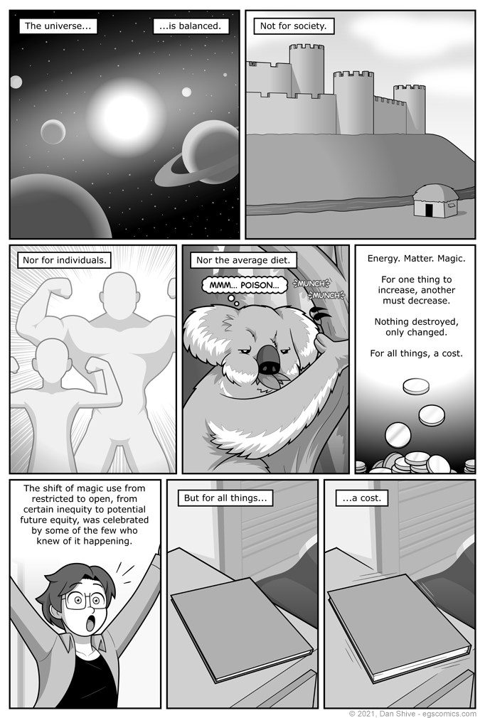 And thus begins Balance, a story arc made up of multiple separate, but related, storylines. It's even got a fancy pants framing device, our first glimpse of which will be on the next page.