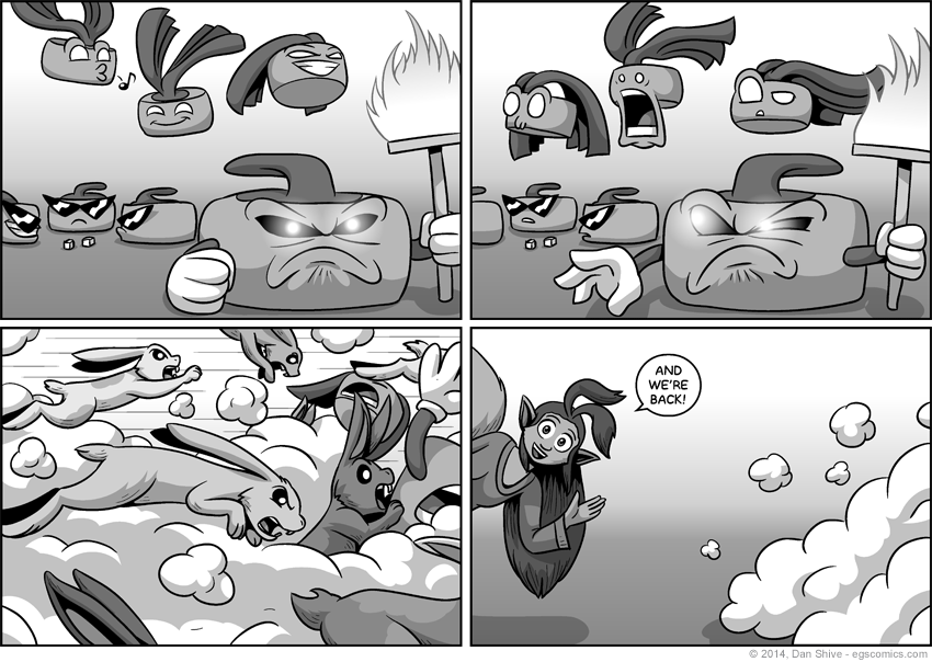 The first month of Patreon was an enormous success! Every milestone was reached, including one I added later. I am very thankful for this support, and it seemed the only appropriate way to finally be rid of the gods of curling was with an onslaught of bunnies.