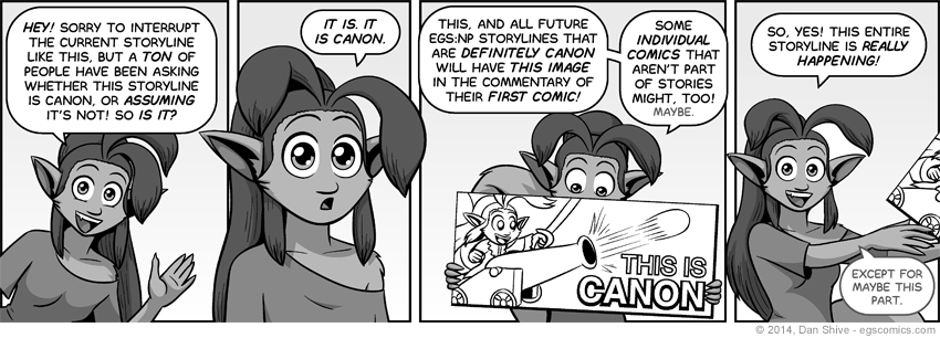 Granted, a storyline might only become canon retroactively, but that image is for "definitely" canon. All you "maybe" canons can get in line! It's still a simple way to check: Just go to the first comic in an EGS:NP storyline and scroll down a bit. If that image is there, bam. If not, the storyline either isn't canon, or has not yet been confirmed as canon.