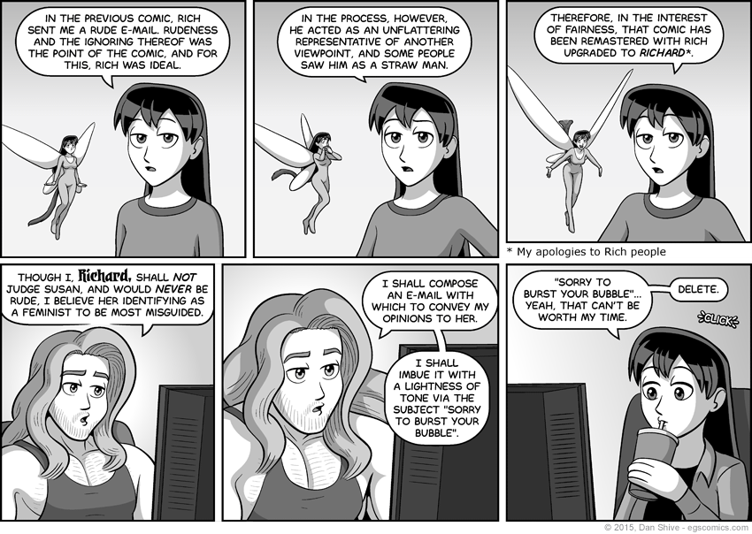 Richard is a gentleman and a scholar, though for some reason, he associates the word "feminism" with negative things. Sadly, Susan deleted the e-mail, so we'll never know what those reasons are.