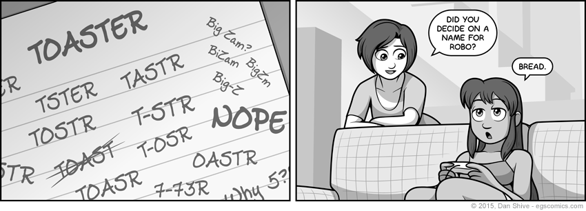 Naming Robo "Bread" amuses me greatly. Your mileage may vary.