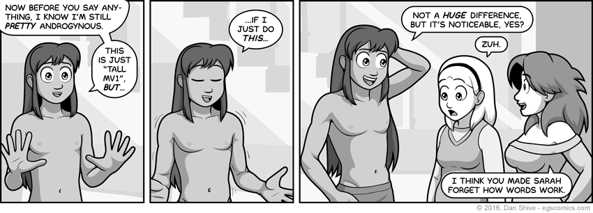 I guess I could claim "that's the joke" while having shifty eyes, but the truth is that I didn't realize until adding shadows how little contrast there truly was. There are a bunch of adjustments, but they're all subtle, and they're subtle enough that I'm not even sure they'll register for everyone. I attempted to add additional muscle tone, but it didn't look right.