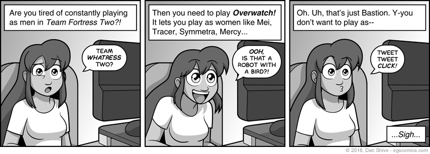 As for my opinion of the game, I like it. I'm generally not motivated to make comics referencing games I don't like, but for the record, I do like it, and my favorite characters to play as are Symmetra and Mercy.