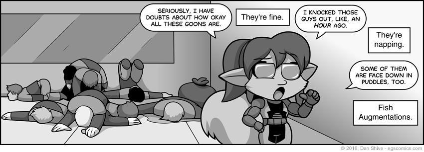 I can't remember if you can drop unconscious bodies into water deep enough for them to sink into without it being an issue. I know there's some water you can't, but that water is also electrified, so it doesn't really work for checking for fish augmentations.