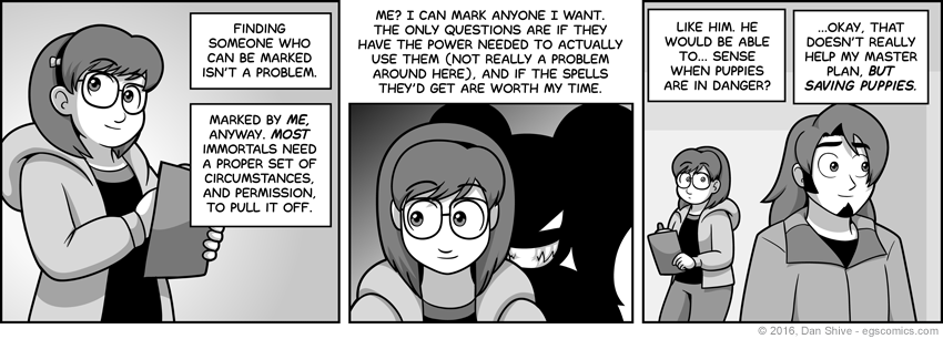 I wasn't planning to ever explain why or how Good Tom was able to sense puppies in danger, but I really like the idea of Pandora being on board with saving puppies.