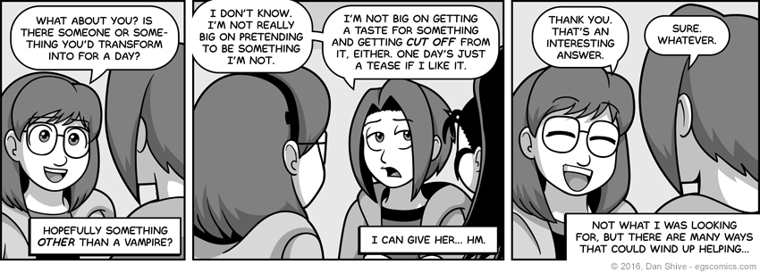 That's where a lot of the ideas for the comic in general come from, really. Just considering a bunch of questions based on what's been established and working off what the answers would be. An oddly fitting approach given this storyline and what Pandora's doing.