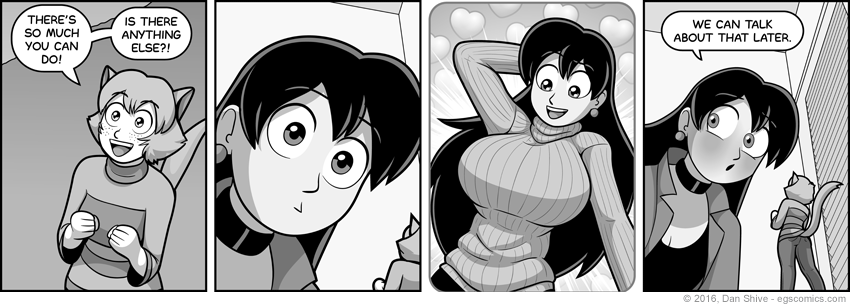 Incidentally, Rhoda is in "tall mode" in that third panel in part just to demonstrate that these particular enchantments do not cancel each other out and can be stacked.