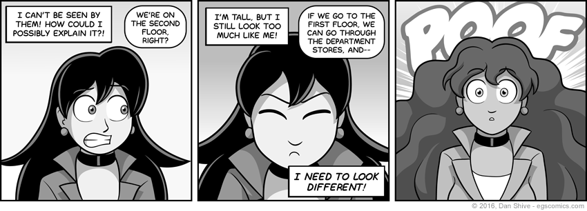 This is an example of a scenario in which there's a sound effect only because it felt off without one. Really, this transformation should be silent (because magic), but the panel didn't feel complete without some manner of "poof" dealie.