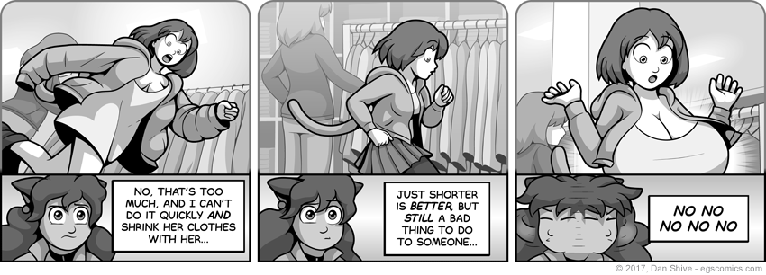 I had figured this comic would be relatively simple with just Kitty moprphs and Rhoda's face, but then I realized the second panel really needed a detailed background (complete with a person) to provide a sense of scale, and the first and third would panels would also need backgrounds for consistency. Wheeee...