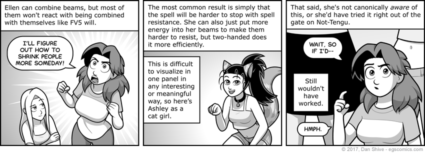 Besides, if I want Ellen to ever have a better shrink ray or something, I am writing this, I have that option. I don't need to spill worms everywhere to do it later.