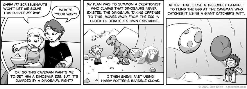 Actually, the ability to become the instant target of hostiles would be very useful. Sarah's predicament in the comic is based on an actual puzzle, and an issue I ran into was the dinosaur destroying its own egg while fighting off whatever I threw at it. There were other solutions, but I ultimately wanted to safely lure it away from its egg. A cheering cheerleader drawing too much attention to herself could have been ideal, if not a bit morbid.