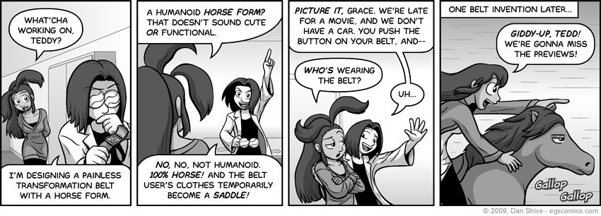 Anyway, I've liked the idea of Grace having a full horse form as an emergency mode of transport for herself and others for a while now. As much as I like that idea conceptually, however, I think Tedd being the horse is funnier.