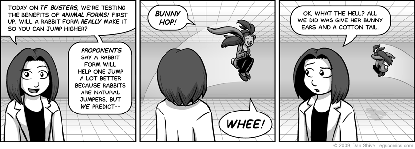 Of course, this strip takes unreasonable expectations to an extreme, but I think Tedd forgot to factor in Grace's natural bounciness.