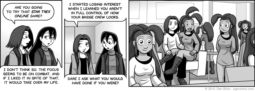 Star Trek Online doesn't have a stranglehold on me. My idea of an ideal Star Trek game would be a sandbox RPG with missions and free roaming exploration. There'd be combat, sure, but I would want a dialogue system similar to the one found in the