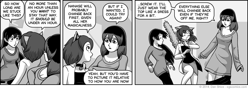 This was originally going to be Wednesday's comic, but hey, I think it works well as a Friday comic. Well, Monday's does, too, but still. Really, the concept of suspensful "Friday" comics is somewhat lost on EGS:NP given that there's always at least one non-update day between updates anyway.