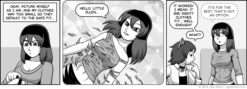 I considered a lot of different lines for panel two, but ultimately I went with reinforcement of that whole "Nanase and Ellen like each other" dealie. You know, just in case people didn't know. This has the added benefit of making clear that the fantasy was NOT about putting on a show for her current audience.