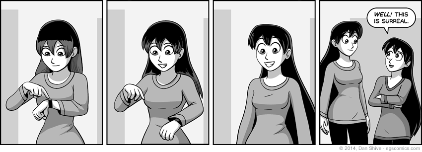 This comic took an absurdly long time to make as a result of me not being entirely certain what I wanted to do next. There were several directions it could have gone in, such as asking Susan why she wanted a blonde hair form, what Nanase wanted in the watch she was promised, etc.