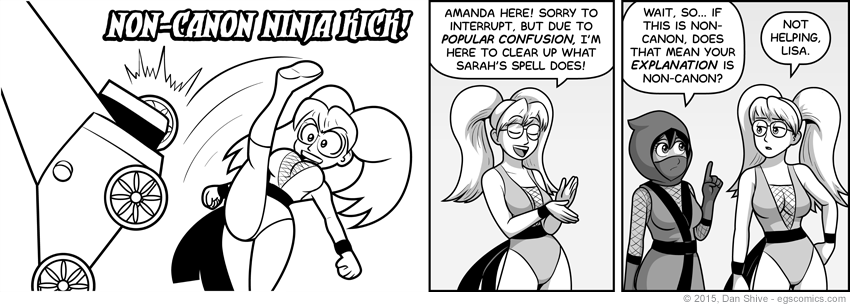I recently decided against having a Q&A segment in the main section, and part of the reason was because I can unleash Amanda and Lisa anytime I want in EGS:NP. Granted, I hadn't expected to unleash them in the middle of a storyline to address one thing, but seriously, I've never caused this much confusion before. It's a new record! YAY!