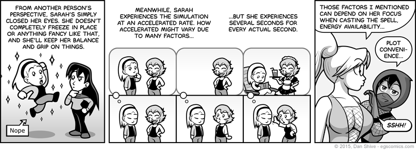 This got me thinking about having that ability in real life, which inspired several spell ideas. The one I wound up using is the one that makes the most sense given EGS's magic system, lack of time travel, Sarah's character, and the story in general. It could've been a LOT more absurd.