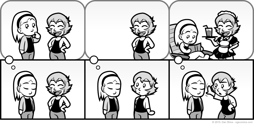 Some variation of the middle chibi panels was the first thing I came up with for visually explaining Sarah's spell.