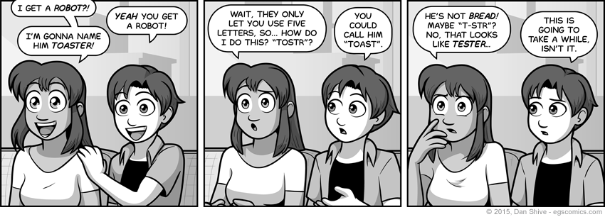 I had originally written this comic with Grace also wanting to name Robo "Big Zam" with Tedd expressing confusion over what Big Zam even is, but I I felt too large a percentage of the readership would be as confused as Tedd and decided to go with something more generally accessible. My one regret is that this meant losing Grace saying "I don't know how to Zam".