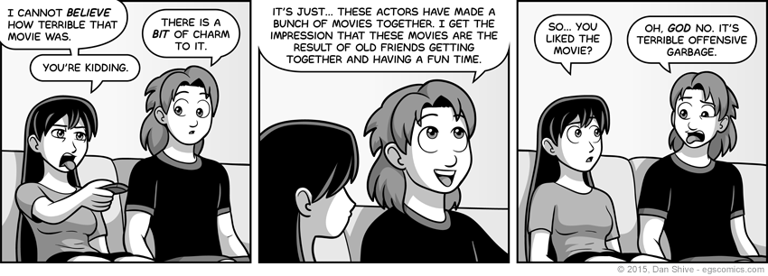 Inspired by the vast majority of anything Adam Sandler has been involved with over the past decade, at least things I'm aware of. There are likely exceptions, which I'm hoping include Hotel Transylvania. For whatever reason, I haven't gotten around to seeing that yet in spite of the animation looking amazing and wanting to see it. I'm guessing people will let me know what they thought of it now that I've mentioned it, so... huzzah?