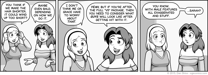 I bring all this up because I felt perhaps the comic might come off as not being particularly nice to baldness. Given this, I felt I should make clear my own hair situation, and how I'm considering keeping it very short by choice because it may well look best that way on me.